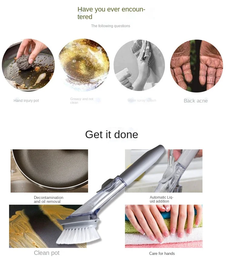 escova longa lidar com lavagem de louça escova limpa multifuncional escova de limpeza de prato com dispensador de líquido pote lavar limpeza