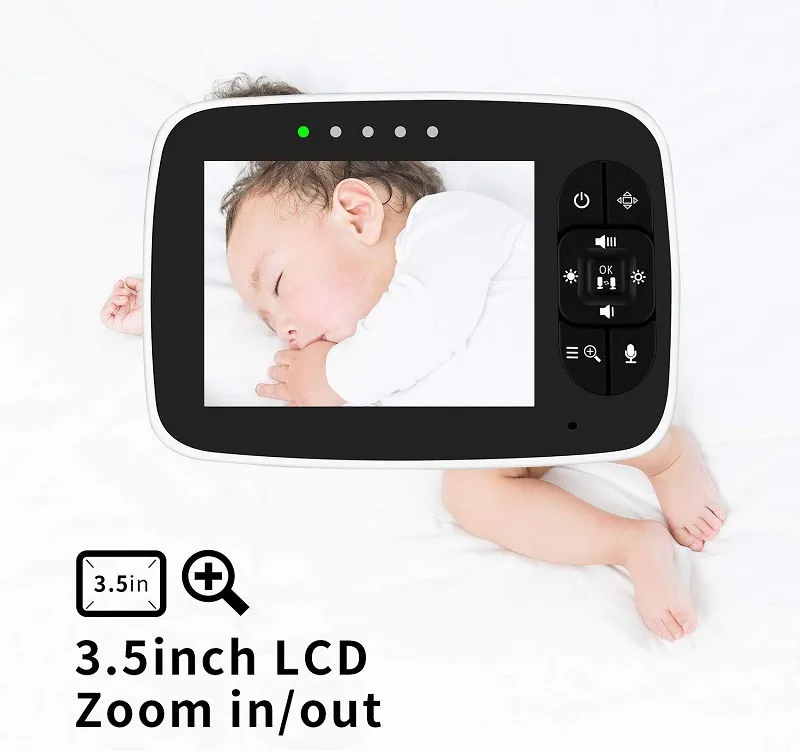 Monitor de bebê de tela grande de 3,5 polegadas com visão noturna infravermelho sem fio monitor de vídeo colorido com câmera de ninar remota Zoom